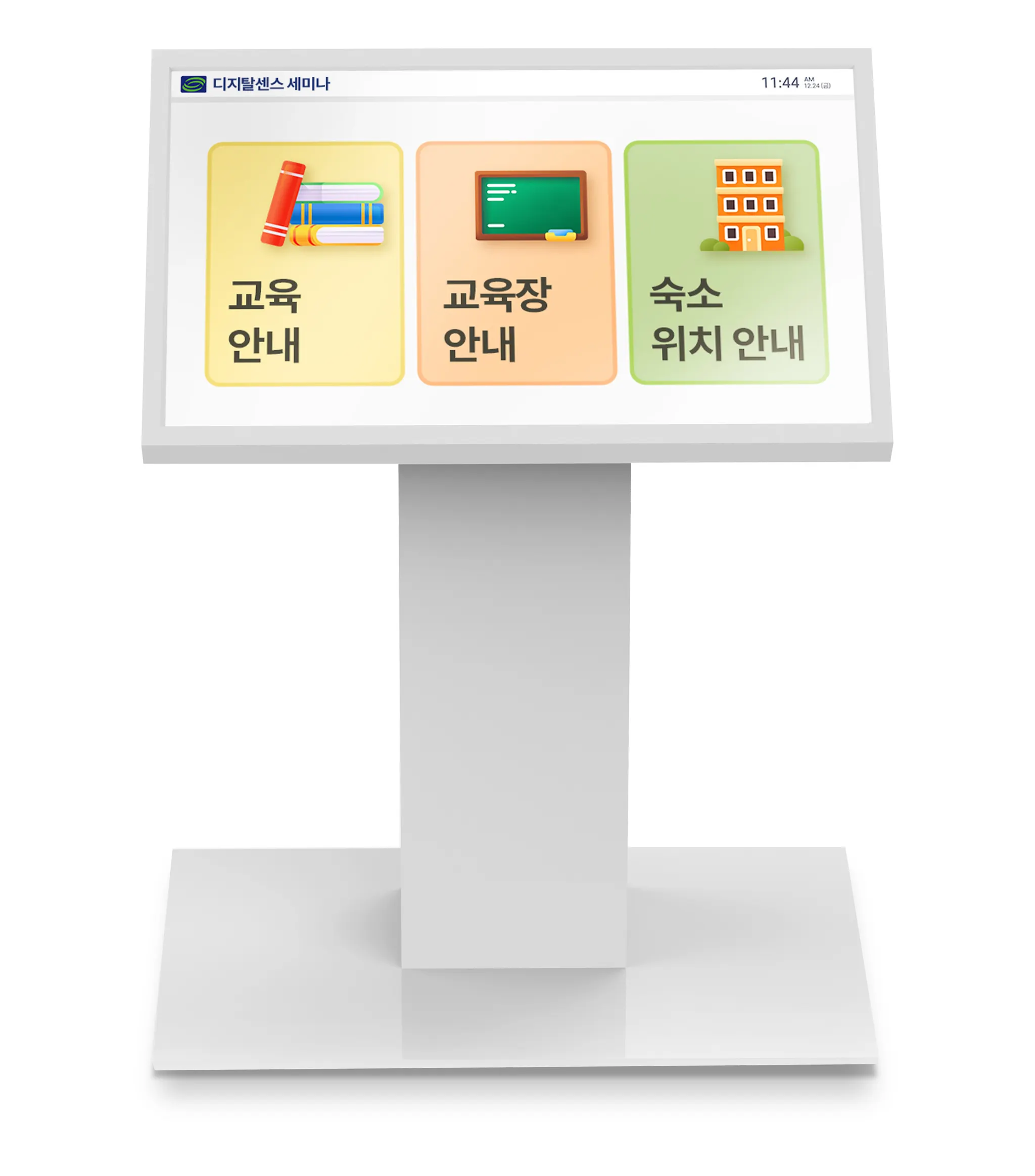 교육장용 무인관리 시스템 (SmartSecure-EasyPass E10)은 교육장에서 무인(Kiosk)으로 교육 안내, 교육장 위치 안내, 숙소 안내와 교육 승인 확인, 출입증 발급, 교육 출결 체크, 교육비 납부, 수료증 발급과 교육장의 예약/사용 상태를 안내하고, 지원하는 시스템입니다.