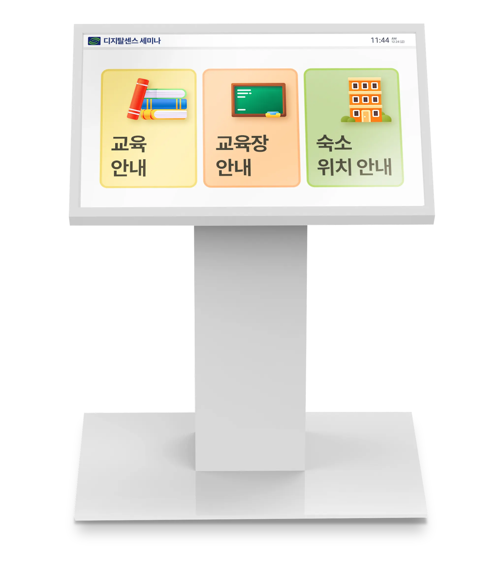 안내키오스크(SmartSecure-Guide)는 안내용도의 키오스크로서 백화점, 상가, 상가, 지도 찾기, 교육장 안내 등 다양한 분야에서 사용하고 있으며, 찾기 방식에서 화면 터치, 음성 인식 등 다양한 방법으로 사용자의 편리성을 지원합니다.
